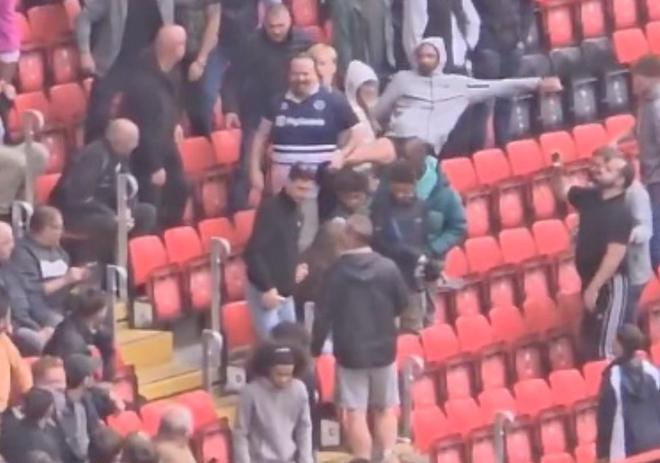 一米尔沃尔球迷进入查尔顿球迷看台挑衅,遭拳打脚踢后被带离