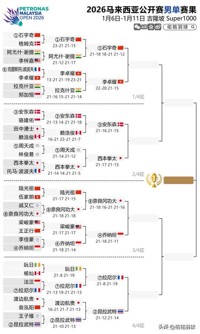 国羽7胜6负,两单项仅剩独苗,男双全军覆没,附大马赛9日赛程